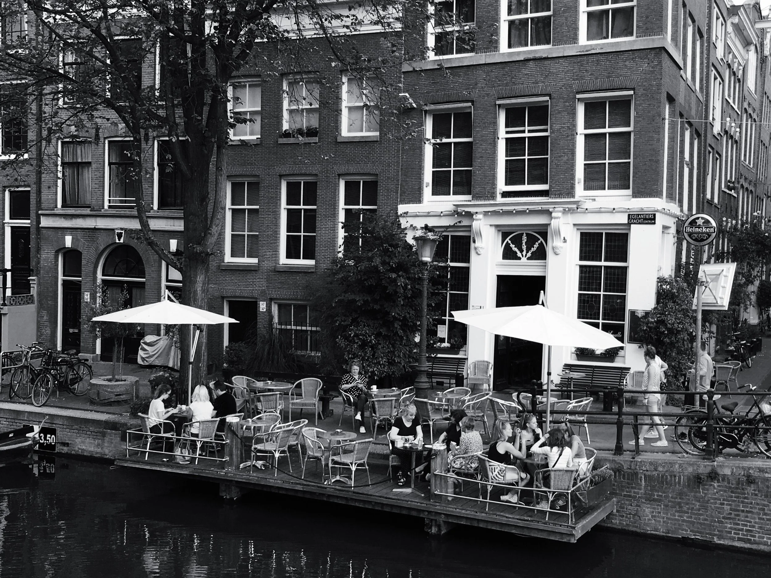And, to end the day, a glass and a portie osseworst. Just as I did as a student with all of my books and notes, I grab a seat on the water at Café te Smalle. For me, this is the perfect place to let the city pass by. Iconic Amsterdam.