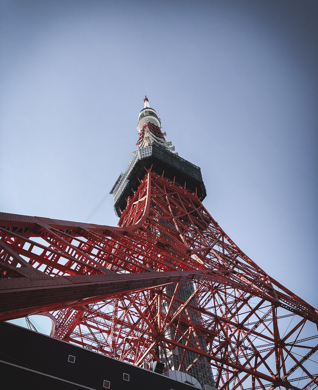 The famous Tokyo Tower, highlighted by wonderfully blue skies.