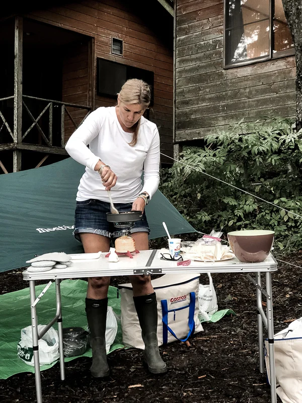 Once we were there, mealtime became a focus of the day. You had to begin far in advance and we all pitched in, gathering little sticks, crafting the fire pit, chopping on a wobbly, makeshift table, etc.